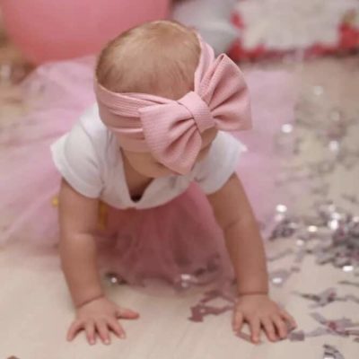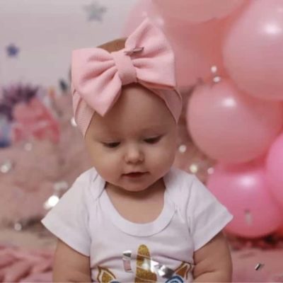 Elastická čelenka z příjemného materiálu, zdobená výraznou mašlí. Čelenka nemá švy, tudíž nedráždí dětskou pokožku na hlavičce.