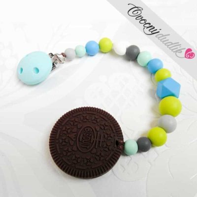 Originální, ručně vyrobený klip, zakončený silikonovou sušenkou nadchne všechny. Pořiďte svému miminku originální doplněk, se kterým se zabaví v kočárku, v sedačce nebo v postýlce. Naše klipy lze kombinovat s háčkovanými korálky, písmenky, i s dalšími zajímavými motivy, které rozzáří úsměv na dětské tváři.