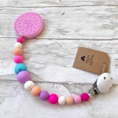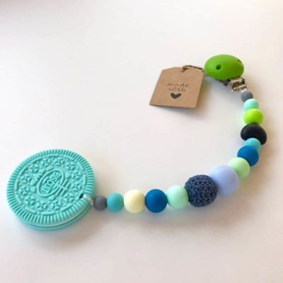 Originální, ručně vyrobený klip, zakončený silikonovou sušenkou nadchne všechny. Pořiďte svému miminku originální doplněk, se kterým se zabaví v kočárku, v sedačce nebo v postýlce. Naše klipy lze kombinovat s háčkovanými korálky, písmenky, i s dalšími zajímavými motivy, které rozzáří úsměv na dětské tváři.