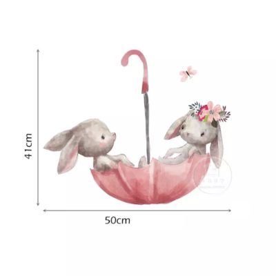 Samolepka na zeď – Zajíci v deštníku
